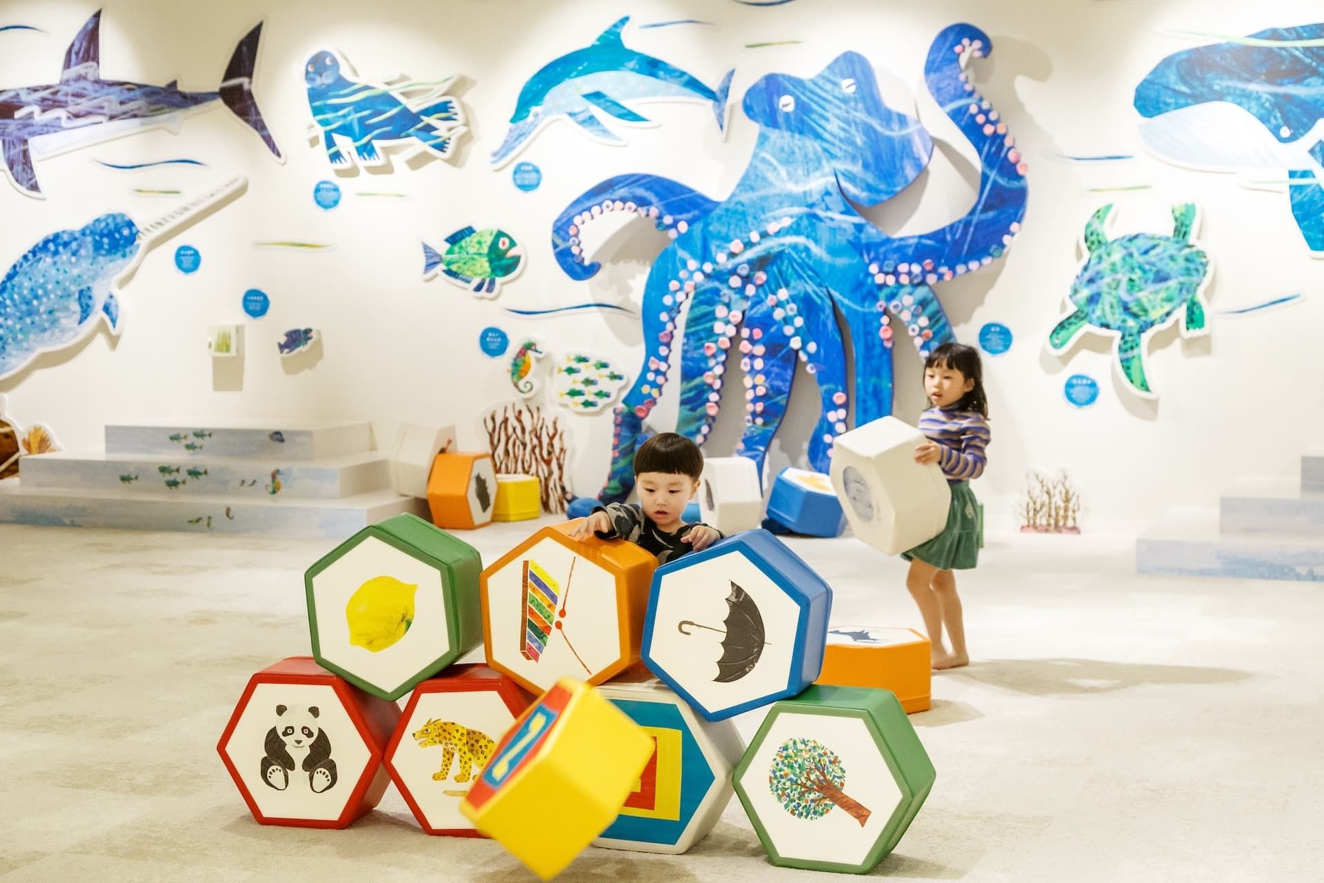 「PLAY! PARK ERIC CARLE(プレイパーク エリック・カール)」は、二子玉川ライズ内にある、世界的に有名な絵本作家エリック・カールの世界観を体験できるプレイパークです。代表作「はらぺこあおむし」をはじめとするカラフルで温かみのある絵本の世界が再現されており、子どもたちが自由に遊べる空間となっています。
