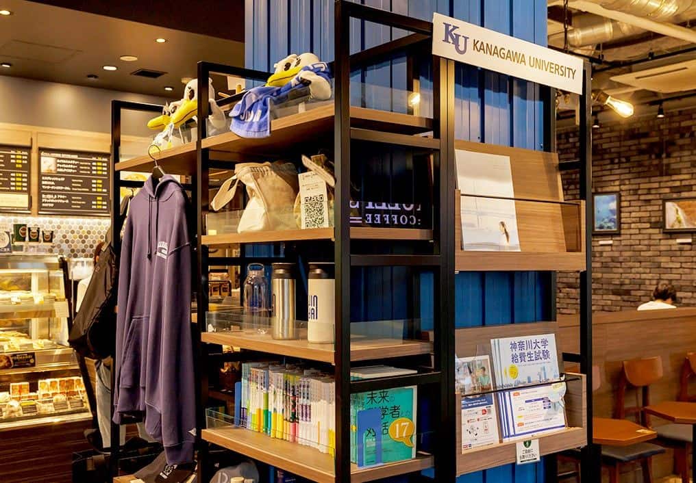 「TULLY'S COFFEE KU白楽駅店」は、神奈川大学とタリーズコーヒー、東急電鉄のコラボレーションで生まれたコミュニティカフェ。学生と地域をつなぐ交流の場です。神奈川大学の専用ラックには大学の広報誌やグッズが並び、美術研究部や写真研究部の作品展示なども楽しめます。地域の最新情報を知るには、ぜひ押さえておきたいスポットです。