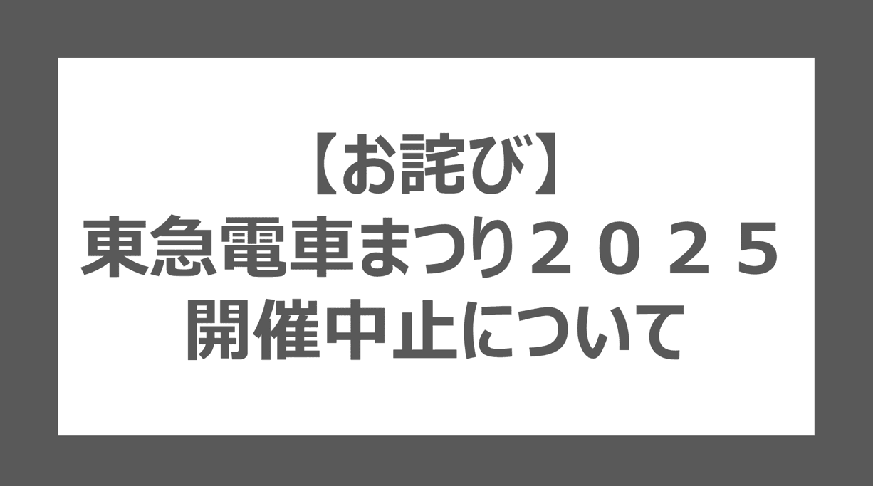「東急電車まつり」にご当選された皆さま、ご来場を楽しみにされていた皆さまには、ご期待に沿えず大変申し訳ございません。心から深くお詫び申し上げます。