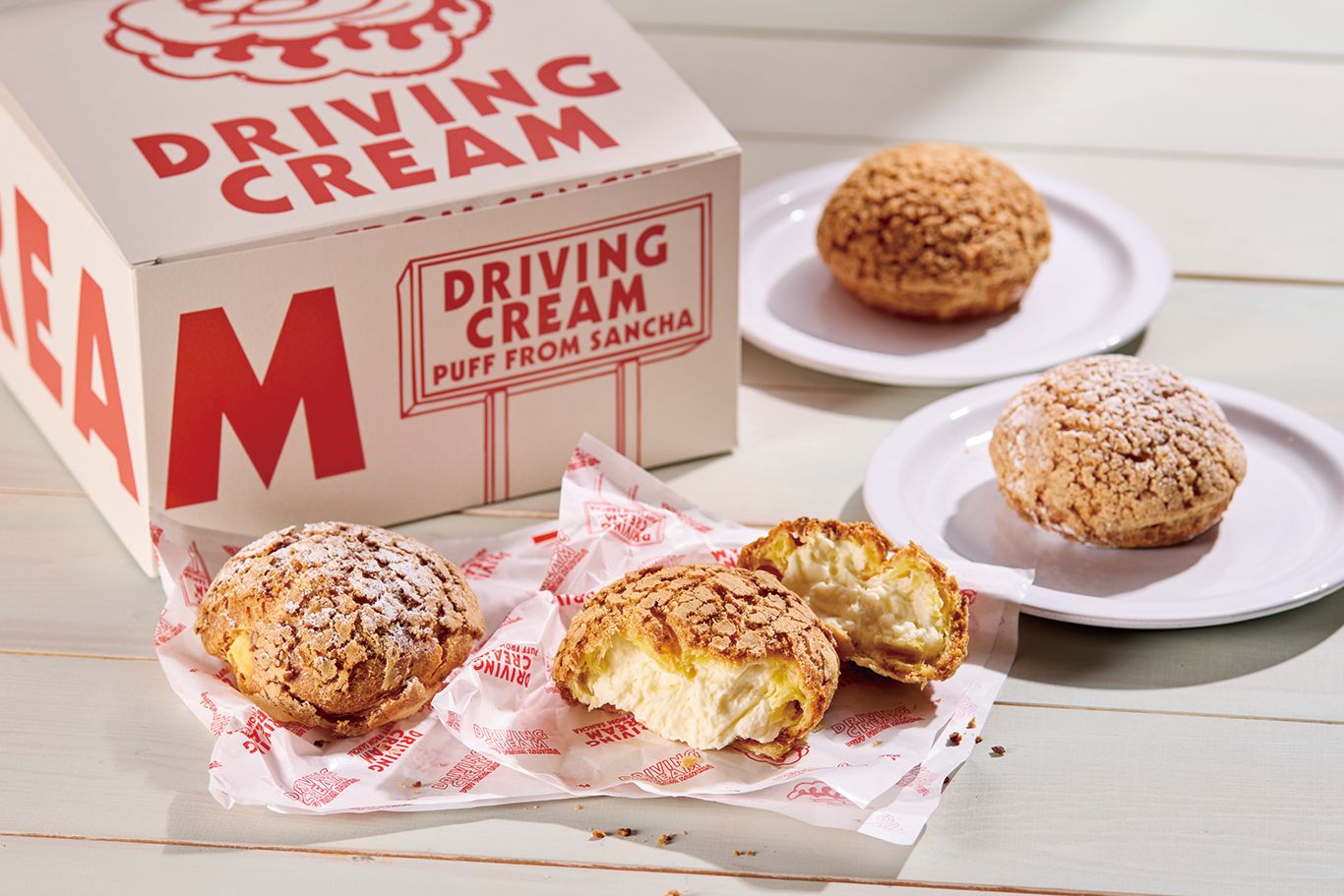 瓶入りチーズケーキ「CHILK」でおなじみのチーズケーキ店「cafe The SUN LIVES HERE」から、シュークリーム専門店が2025年秋にオープン。「ワクワクを加速させる」をコンセプトにたどり着いたのは、驚くほどザクザクな生地×濃厚クリーム。生地もクリームも2種から選べ、「ザクパフ」はシュー生地の底をパイで包み、皮付きナッツを散らしたクッキーで覆っていてたまらなくクリスピー! 一方「パフ」はシュー+クッキー生地でサクサク軽やか。合わせるクリームはチーズor カスタードの2択。陽だまり色のカスタードはぽってり滑らかで卵のコク豊か。チーズクリームは大胆にも「cefe The SUN~」の人気作「濃厚生クリームチーズケーキ」そのものを絞っていて、北海道・根釧(こんせん)の生クリームと十勝産クリームチーズの幸せな乳味が詰まっている。注文後にチーズクリームを絞った「ザクパフ」を頬張れば、力強くザックザクまったり。香ばしくて濃厚ミルキー、爽やかな酸味に頬が緩む。