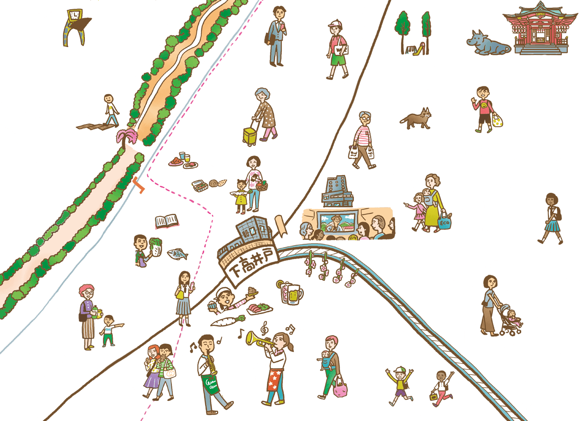 世田谷区と杉並区にまたがり、世田谷線と京王線が乗り入れる下高井戸は昔ながらの古き良き面影を色濃く残すまち。昔ながらの青果店や鮮魚店が軒を連ねる商店街、昭和の香り漂う名画座や地元に愛される銭湯など懐かしさを感じられる街並みが広がります。ふと路地に入ると新たな発見があるかも。