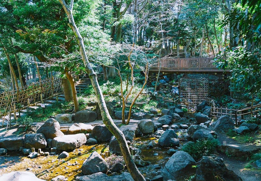 まちのシンボルは、肥後国藩主・細川家下屋敷の庭園跡を活用した「戸越公園」。池を中心に渓谷や滝、築山などの配置の中を一周する回遊式庭園で、梅や桜、藤、イチョウなど、四季折々の美しい植栽が楽しめます。近くの「文庫の森」には、魚が生息する池や広い芝生広場も。穏やかなひとときを過ごせるまちです。