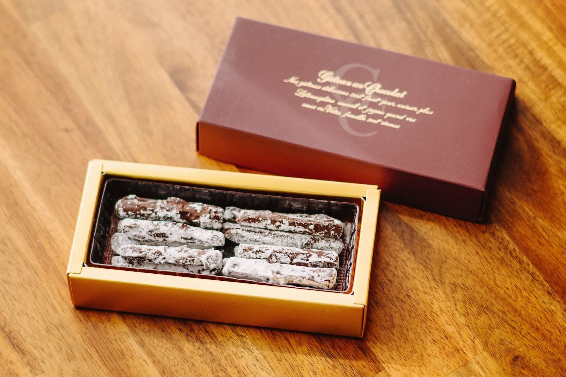 ひんやりとした小枝状の生チョコは、外はパリッとしているのに口溶けは柔らか。誰からも大好評で、なかにはプレゼントしたあとにお店に足を運んだと報告してくれる人もいます。アーモンド洋菓子店の努力の賜物なのですが、なんだか自分の街を認めてもらえたようで、こっちまで誇らしい気分。生チョコのほかにも、クラシックなケーキがたくさんあるのもありがたい。