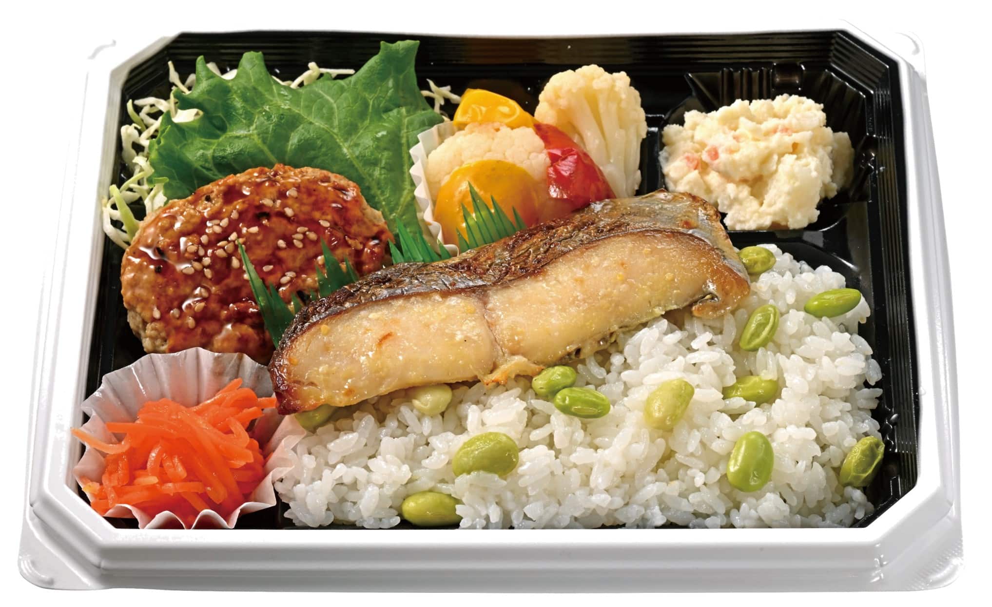 東急病院の管理栄養士が監修し、「おいしく健康に」をテーマに開発。色々な種類の野菜のおかずを盛り合わせた1/3日分の野菜量(※製造時)が摂取できるお弁当です。枝豆ご飯に主菜は白身魚の西京焼と豆腐野菜ハンバーグ、副菜はカリフラワー、パプリカの焼きびたし、キャロットラペ、ポテトサラダと彩り鮮やかな一品です。