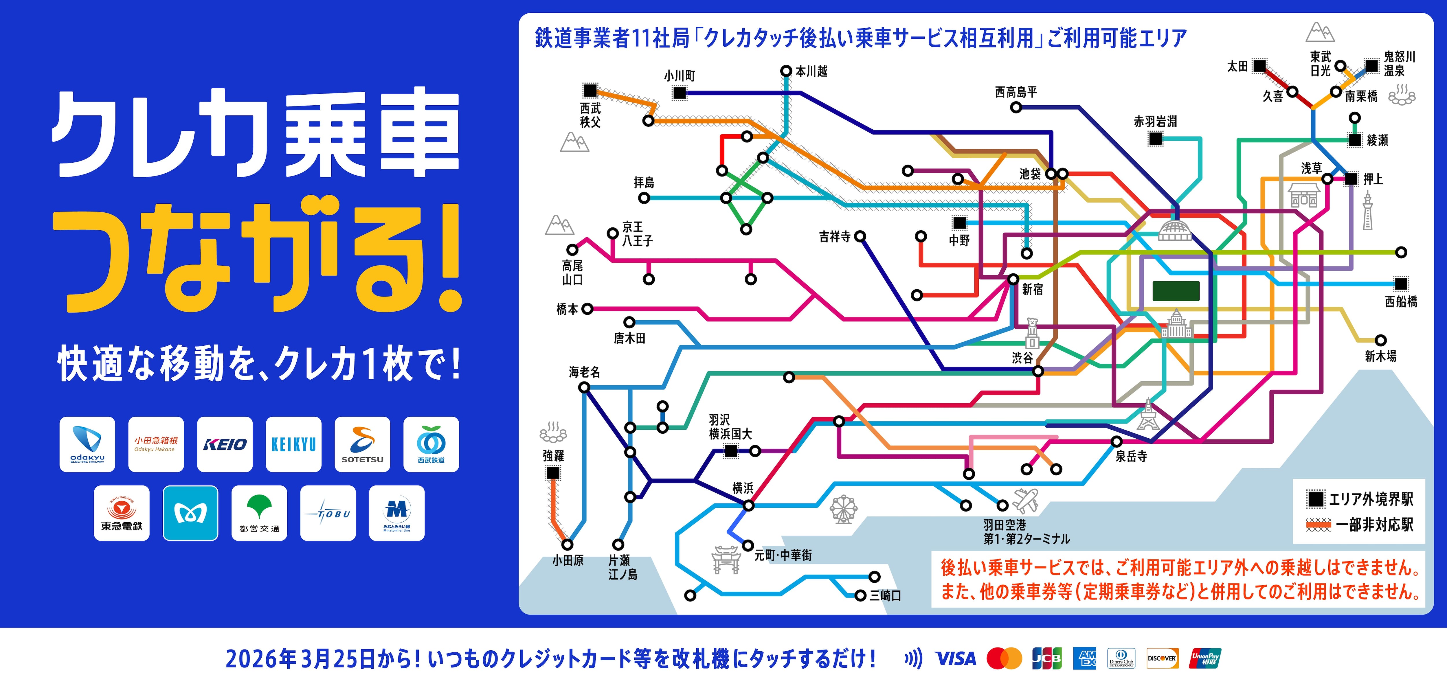 - タッチ決済対象外事業者への乗り越しはできません。タッチ決済対象外事業者までご利用の際は、きっぷまたは交通系ICをご利用ください。