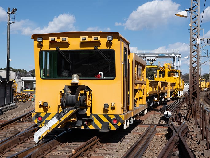 砕石やレール等運ぶための動力車です。1台のモーターカーで85トンを牽引する能力があり、重い物を運ぶ場合は、2台繋げて運ぶこともできます。