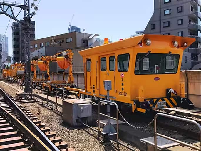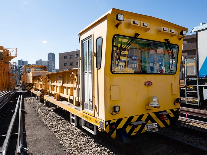 レール表面の凹凸を削って滑らかにする機械です。レールと車輪の接触面から発生する騒音や振動も低減させます。