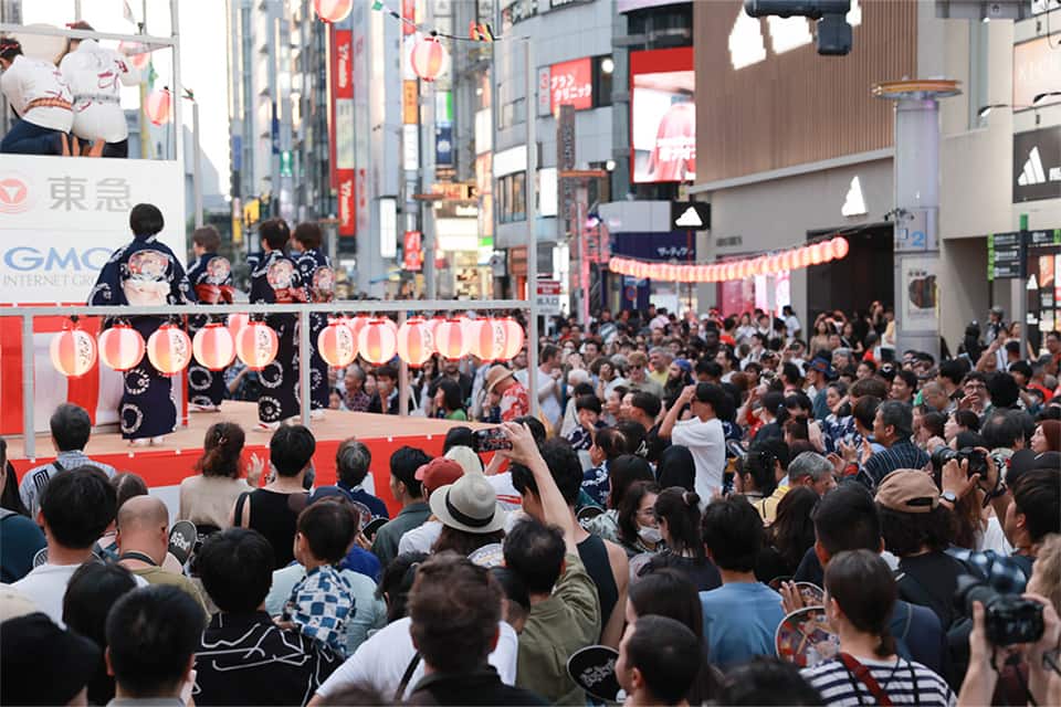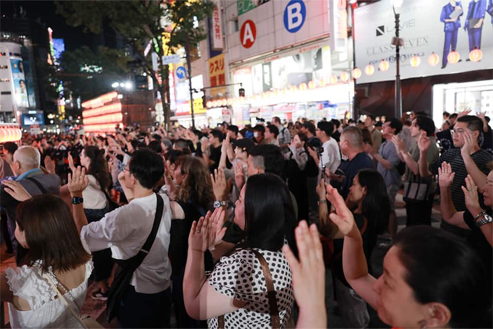 長谷川 はい、初回からたくさんの来場者であふれかえりました。当初はたまたま渋谷に来て、盆踊りを楽しまれた方が多かったのですが、年々「渋谷盆踊りを目指して来る」人が増えています。6回目となる今年は台風予報に振り回されながらも無事開催でき、約6万2千人が来場。うち3割は外国人で、国際色豊かな輪が広がりました。浴衣姿の親子連れから観光客まで、世代や国籍を超えて一緒に踊る光景は本当に感動的です。