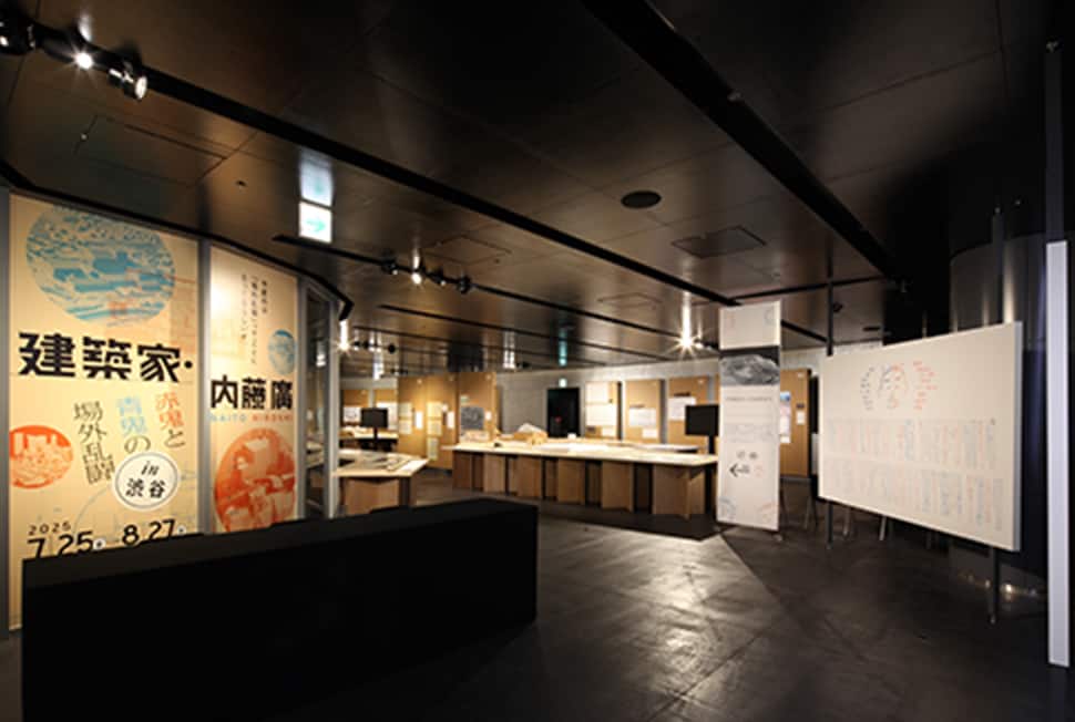 前川 この展覧会は、2023年に島根県益田市で開催された「建築家・内藤廣 BuiltとUnbuilt 赤鬼と青鬼の果てしなき戦い」の“渋谷版”として企画されたものです。開催のきっかけは、益田に足を運んでくださった、渋谷の再開発に深く関与している商店会メンバーの方たちに「ぜひ、このような展覧会を渋谷でもやってください」と言われたことでした。「渋谷駅中心地区デザイン会議」で内藤と旧知の仲であった方々からの働きかけがなければ、このプロジェクトは実現しなかったと思います。約1年の準備期間中に「渋谷で開催する意味」を問い直し、コンセプトの練り直しから取り組んだので、巡回展ではなくまったく別の展覧会と捉えていました。