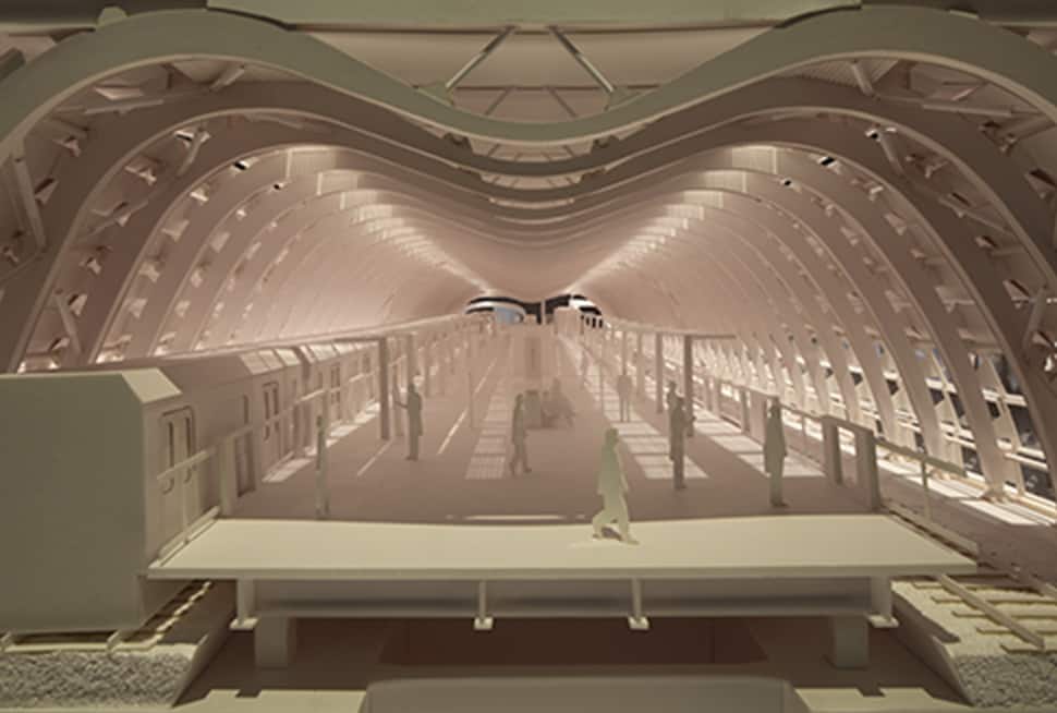 前川 通常、展覧会では適宜、専門業者さんにアウトソーシングするのですが、今回、展示のほとんどは“内藤廣建築設計事務所 設計施工”として、ほぼ内製で対応した点が特に大変でした。益田での展示台の再利用、最終的な質の向上、さらに外注では急ぎの対応が難しい直前の修整を可能にできることが、内製とした理由です。そのためギリギリまで制作が押してしまい、東急さんをお待たせしてしまうこともありました。模型のサイズは非常に大きく、例えば東京メトロ銀座線渋谷駅の模型は幅1.4m×奥行き6mの1/20スケールで、7分割して制作しました。また、3.4m角におよぶ都市スケールの模型も制作しました。