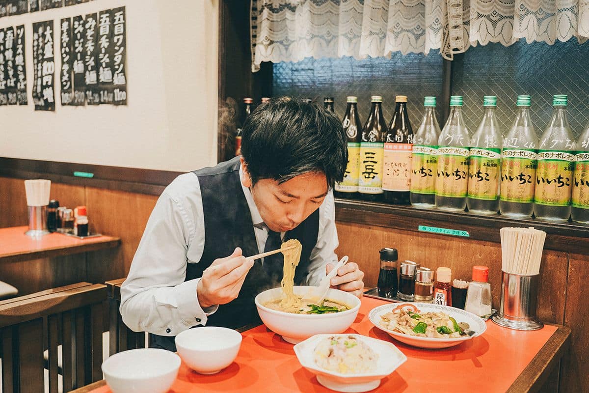 大倉さんのイチ推しは、鉄板メニュー「スタミナラーメンと半チャーハンのセット」。彼が10代のころから愛するソウルフードであり、多くの常連客を惹きつけてやまない鳳龍の看板的存在でもある。