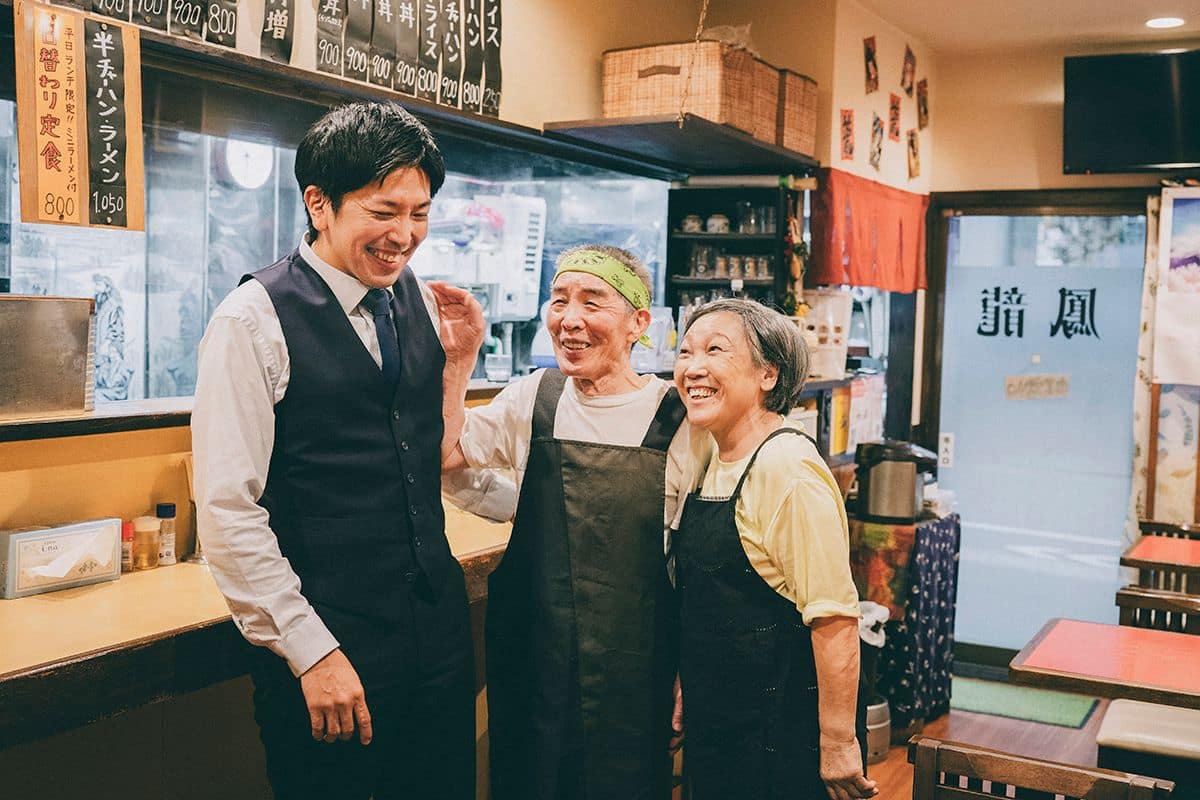 地域の人々をつなぎ、初めて訪れた人も笑顔にしてしまう鳳龍。夫妻と大倉さんの親しみに満ちた語らいから、多くの人に長く愛されるこの店の魅力を掘り下げてみよう。