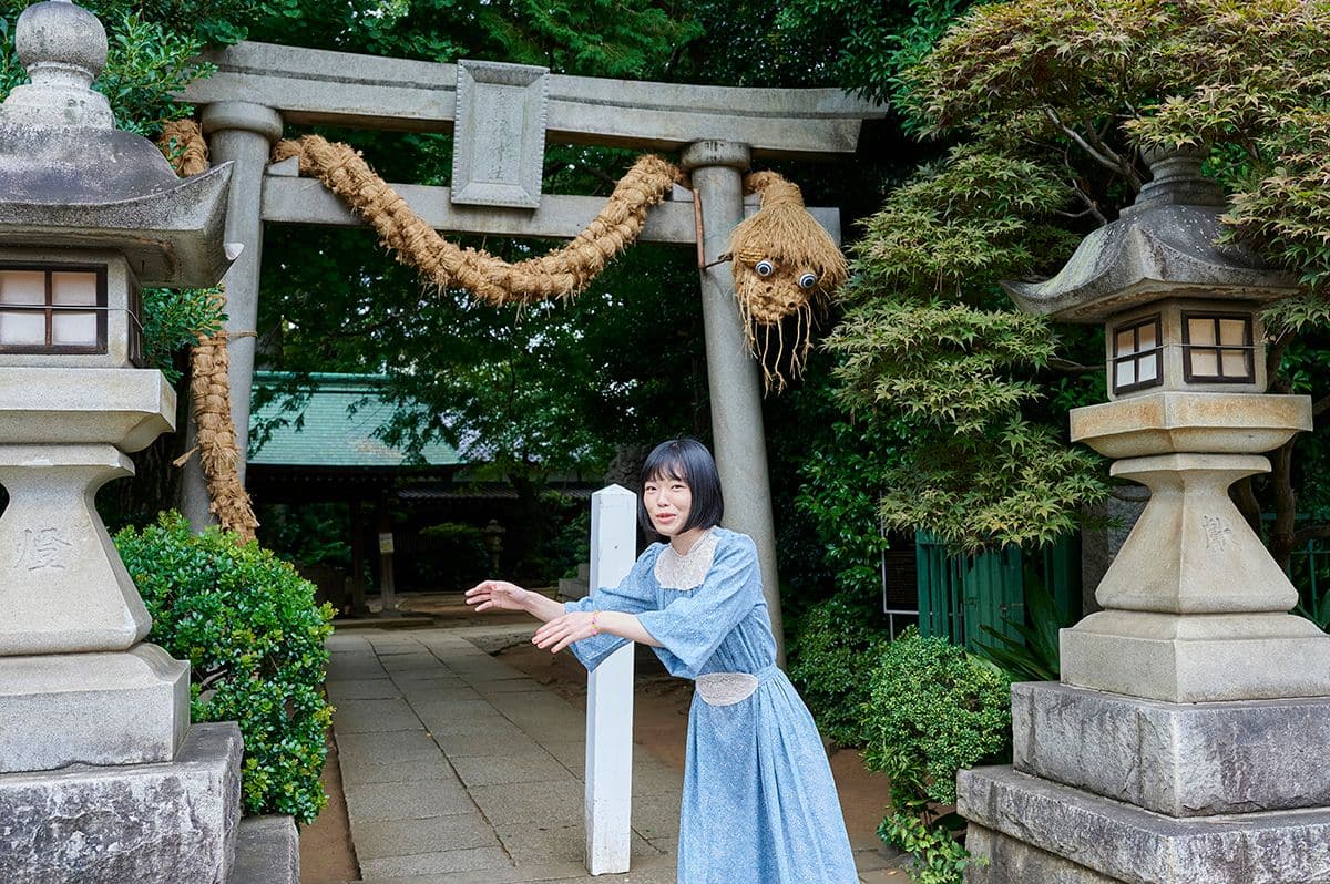 自由が丘駅に向かって歩いていると、迫力のある藁(わら)の大蛇が鳥居にからみついた「奥澤神社」の前を通りかかり、お参りすることに。