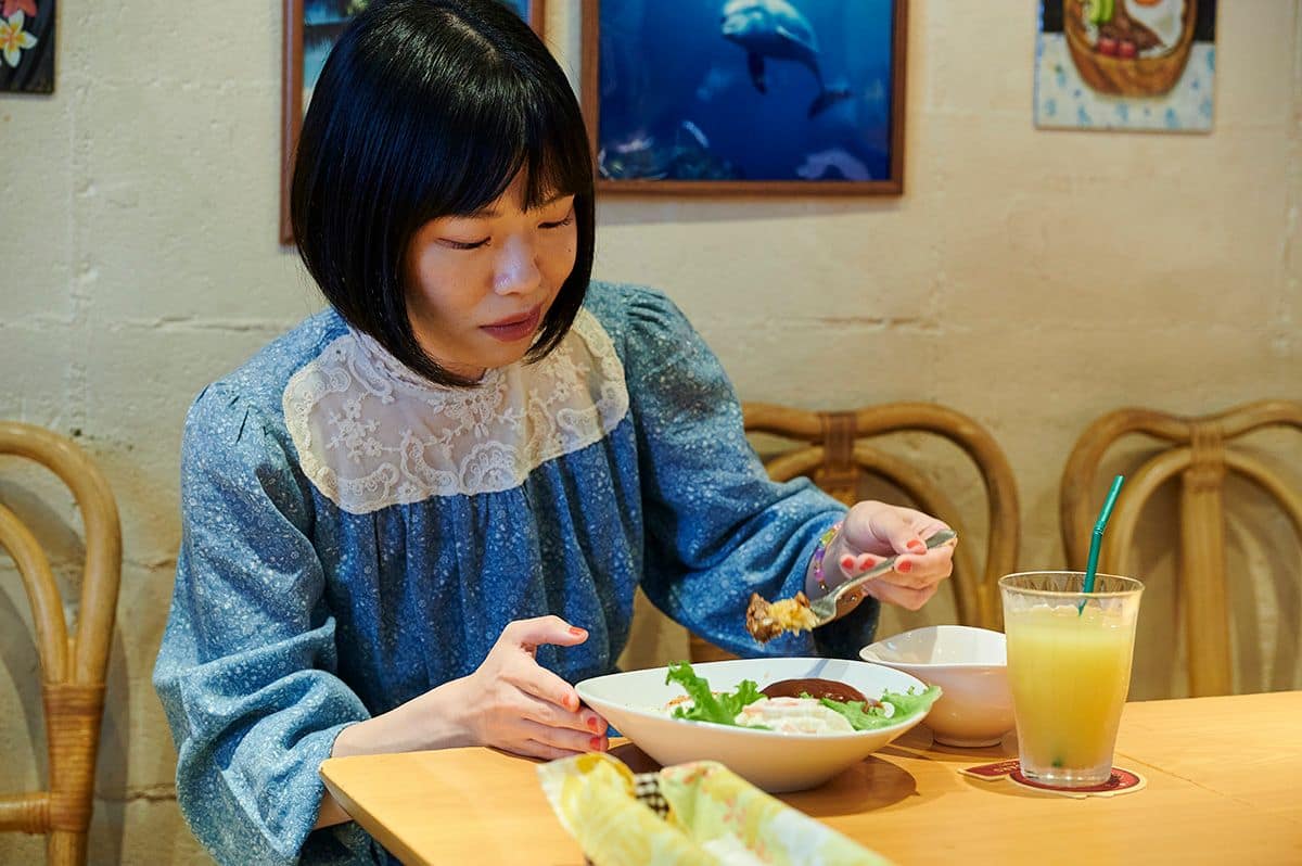 すごい、お肉に迫力があって美味しい! ソースもたしかに、思っていた「ロコモコ」とぜんぜん違いますね。これが本物の味なんだ……。