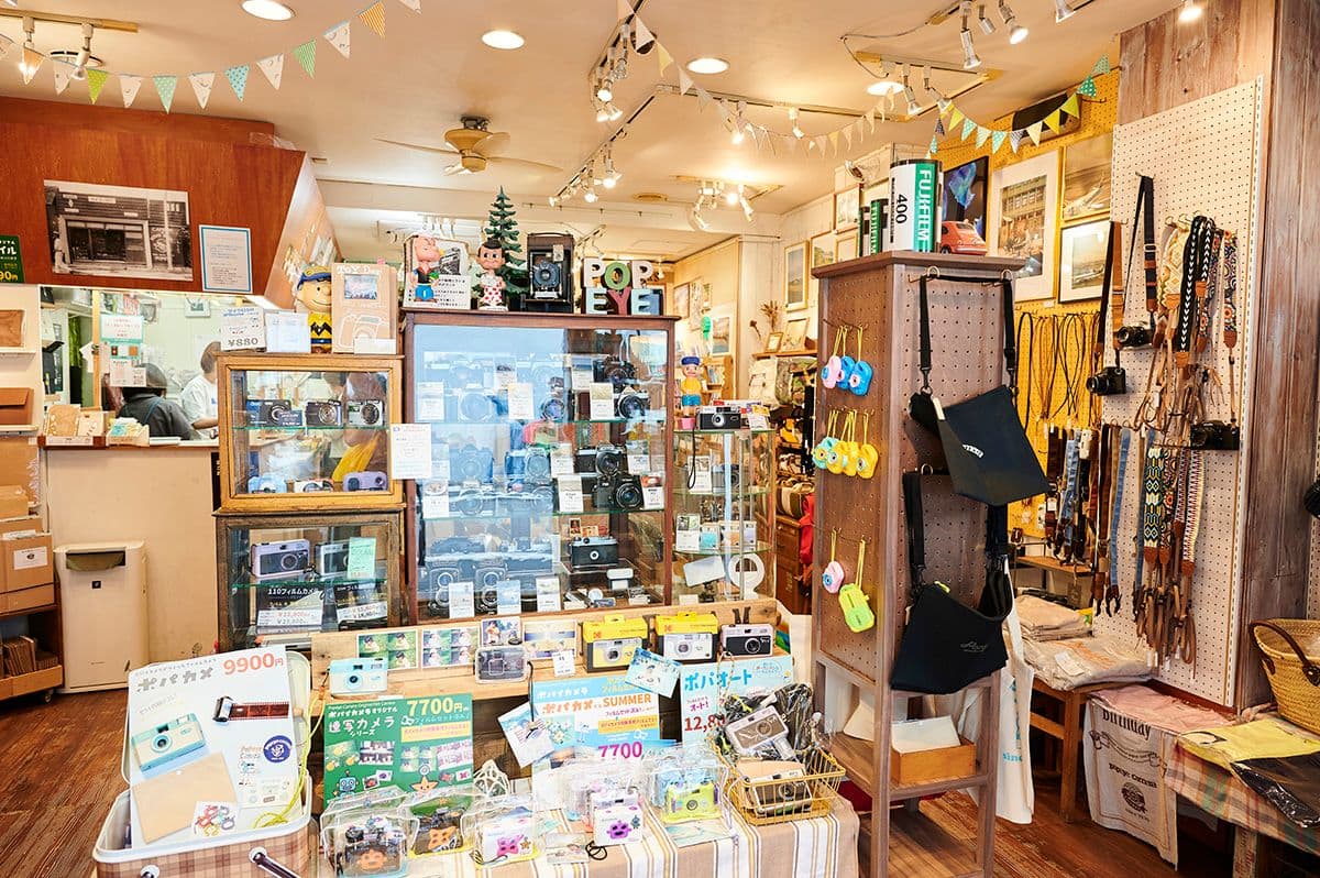 ポパイカメラは、2026年に創業90周年を迎える老舗の写真専門店。カメラ本体やフィルムのほか、ストラップやアルバム、雑貨などの周辺グッズも販売してお り、写真の現像も依頼できる。