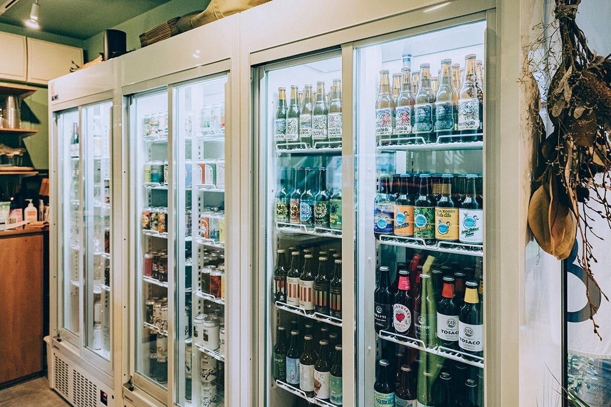 店内の冷蔵庫には、カラフルなラベルの缶や瓶がぎっしり並ぶ。その数は約100種類。すべて日本国内のブリュワリーによるものだ。アパレル時代にインポート商品も扱っていた植松さんが、なぜ「日本産」 にこだわるのだろうか。