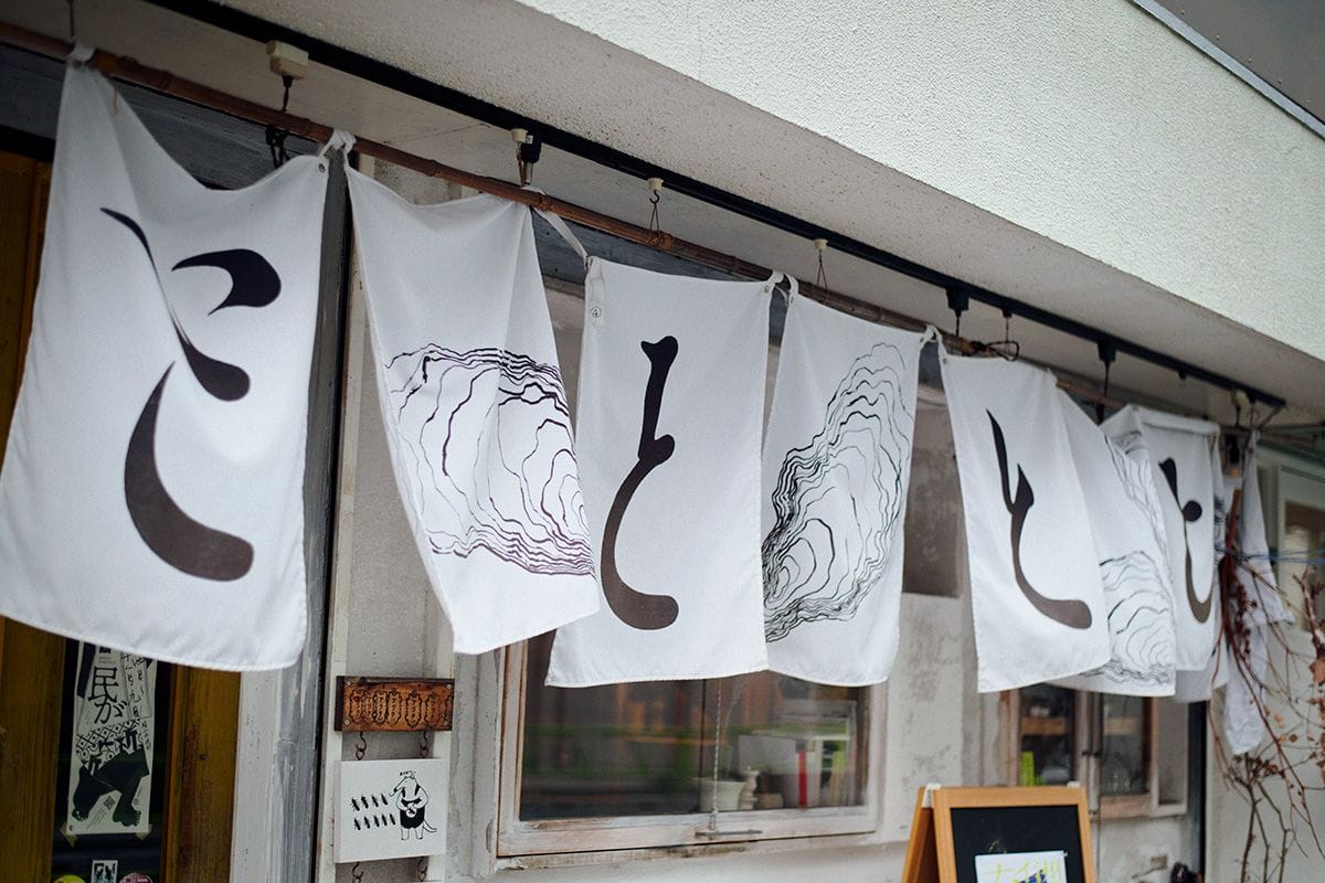 そんな店の歴史に深く関わっているのが、グラフィックデザイナー・アートディレクターで専門学校・桑沢デザイン研究所や東北芸術工科大学で教員を務める髙谷廉さんと、その教え子たち。店の軒先にはためくのれんや、アイコン的な硴のイラストレーションなども、彼らがデザインしたものだ。