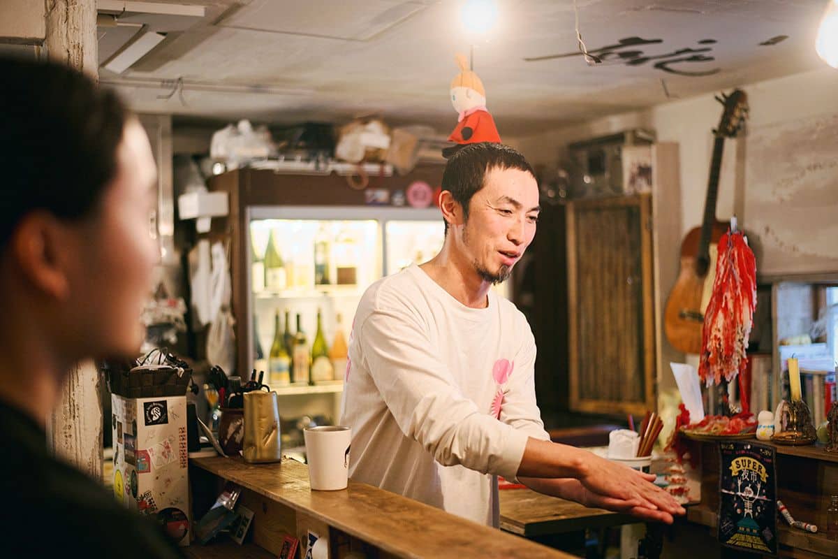 廣岡さんが2014年に初めて店を構えたのは、松陰神社前の商店街。当時から、軒先で野菜を販売したり、商店街を巻き込んで蚤(ノミ)の市などのイベントを開いたりと、居酒屋の枠にとらわれずに活動してきた。音楽活動も行っている廣岡さん自 身が、ときに店内で弾き語りを披露することも。
