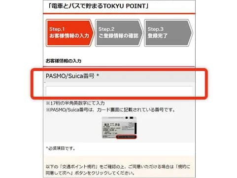 以下より、TOKYU POINT CARDを新規発行のうえ、お手持ちのPASMO/Suica番号をひもづけてください。「電車とバスで貯まるTOKYU POINT」の登録が完了します。